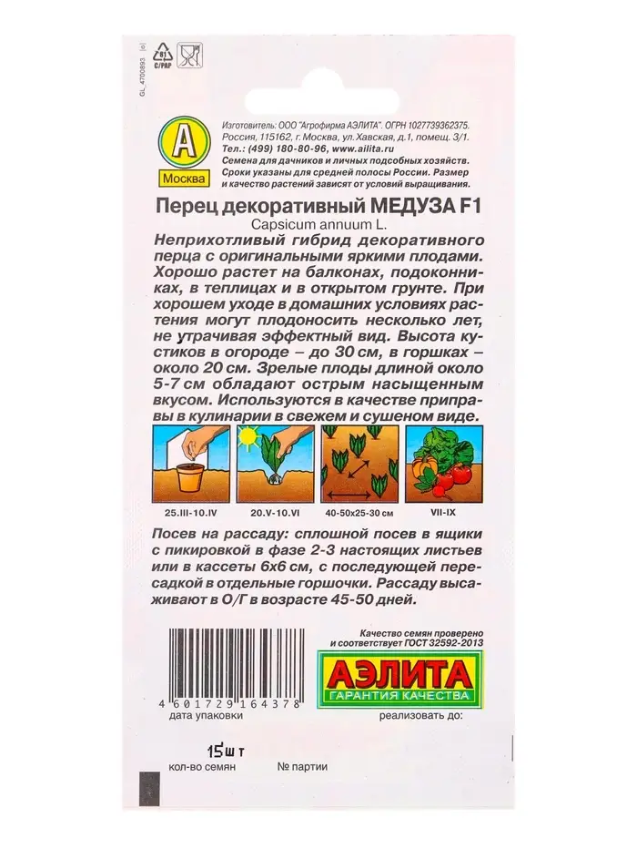 Семена цветов Перец декоративный Медуза F1, Ц/П,15 шт.