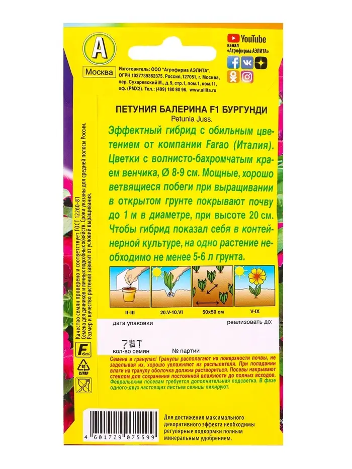 Семена цветов Петуния Балерина бургунди крупноцветковая F1 (драже) С. Farao, Ц/П,7 шт.