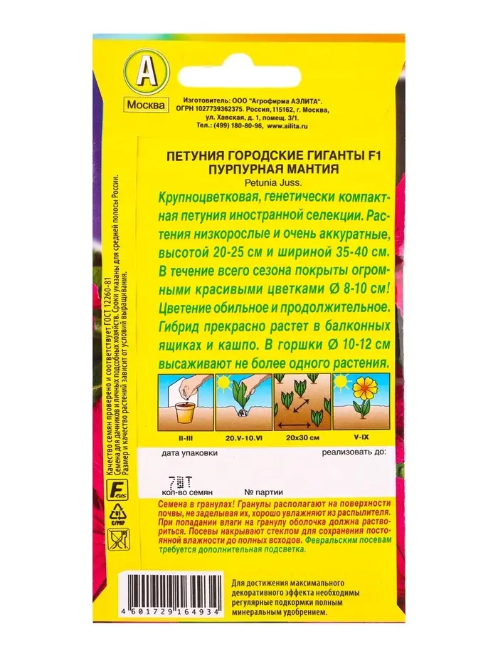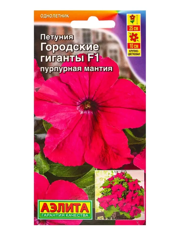 Семена цветов Петуния Городские гиганты F1 пурпурная мантия (драже в пробирке), Ц/П,7 шт.