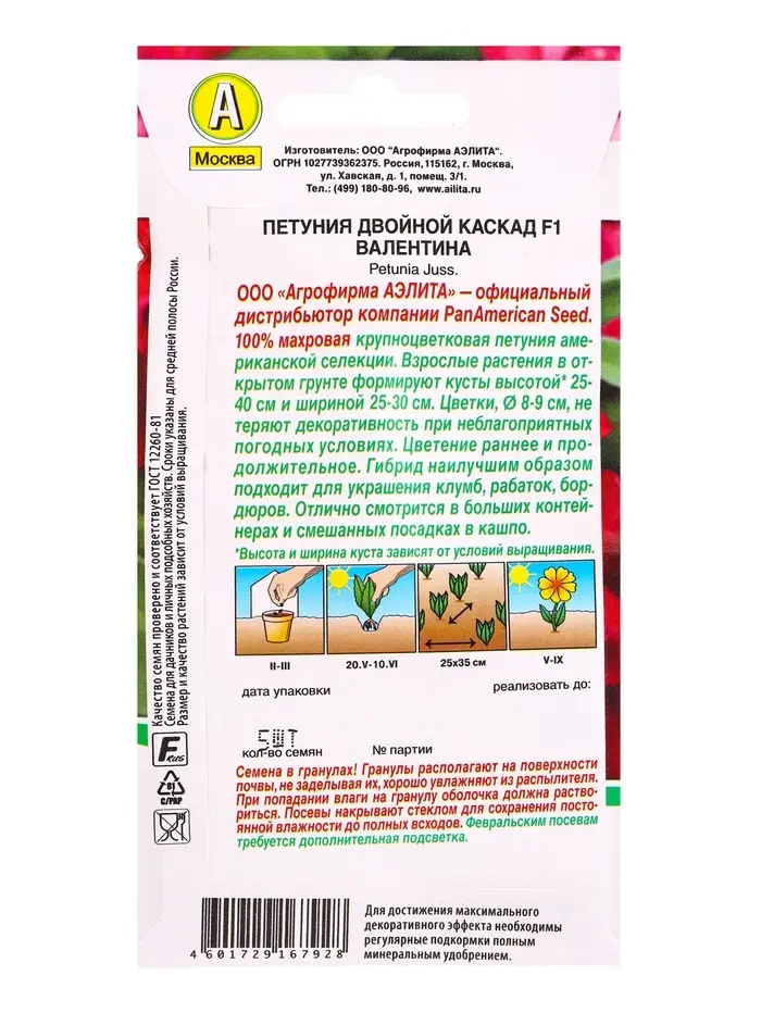 Семена цветов Петуния Двойной каскад F1 валентина (драже) PanAmerican, Ц/П,5 шт.