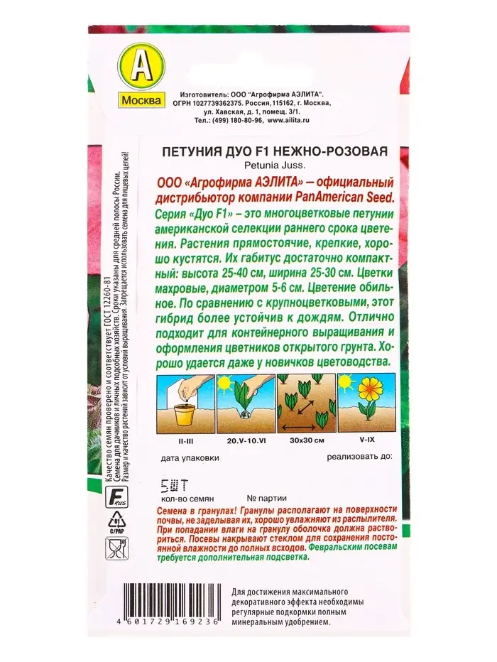 Семена цветов Петуния Дуо F1 нежно-розовая (драже в пробирке) Спецсерия PanAmerican, Ц/П,5 шт. 1094