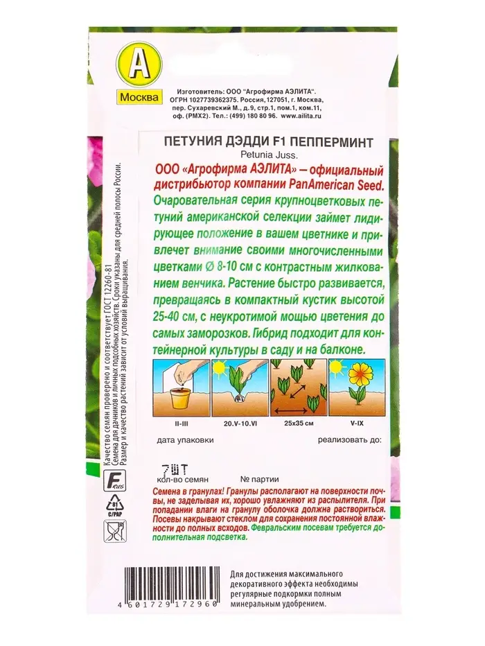 Семена цветов Петуния Дэдди F1 пепперминт (драже в пробирке) Спецсерия PanAmerican, Ц/П,7 шт. 10945
