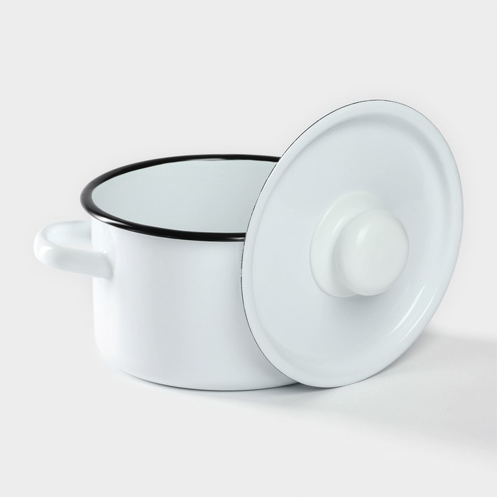 Кастрюля эмалированная, 1,5 л, металлическая крышка, цвет МИКС