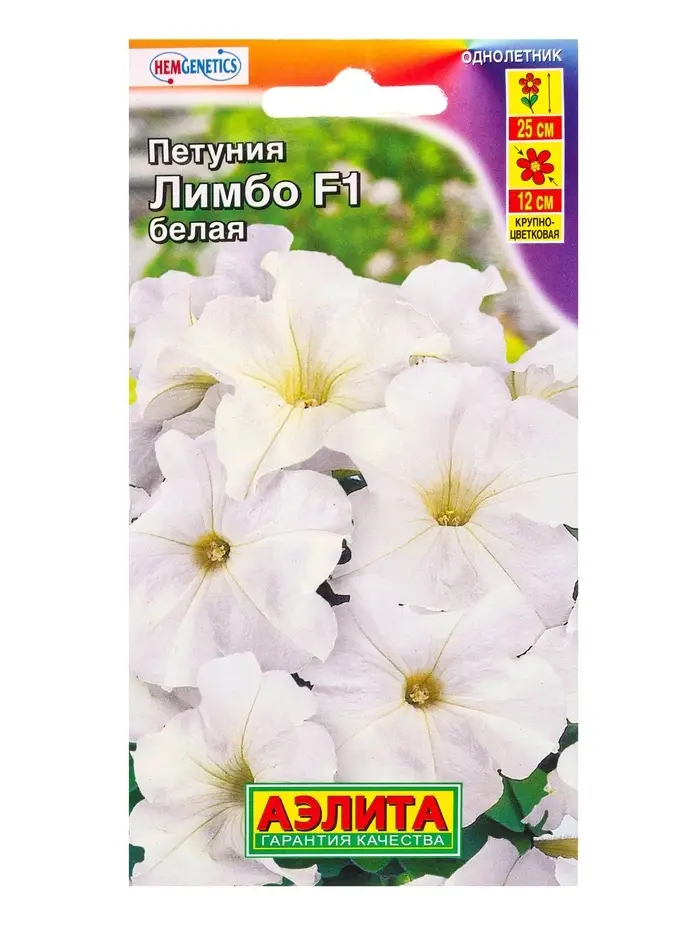 Семена цветов Петуния Лимбо F1 белая крупноцветковая (драже) С. Hem Genetics, Ц/П,7 шт.
