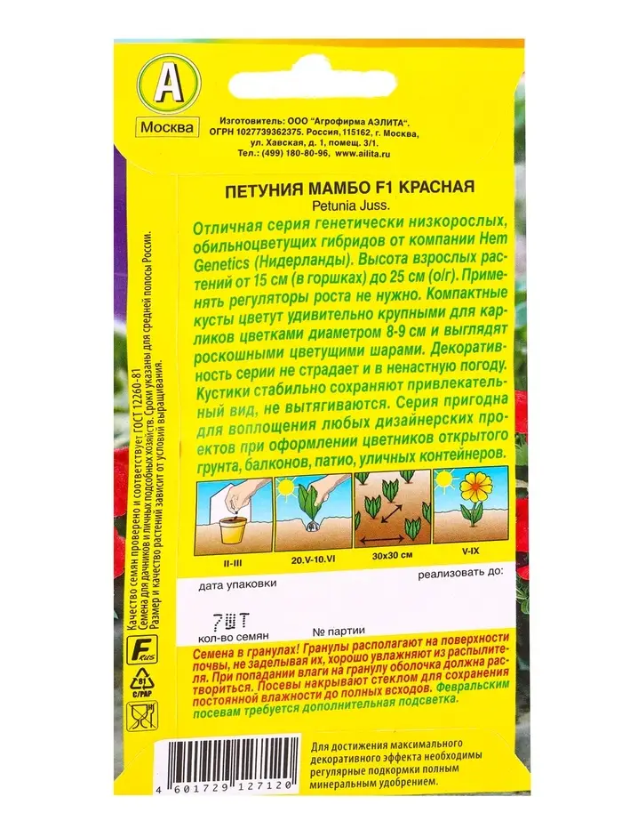 Семена цветов Петуния Мамбо F1 красная многоцветковая (драже) С. Hem Genetics, Ц/П,7 шт.