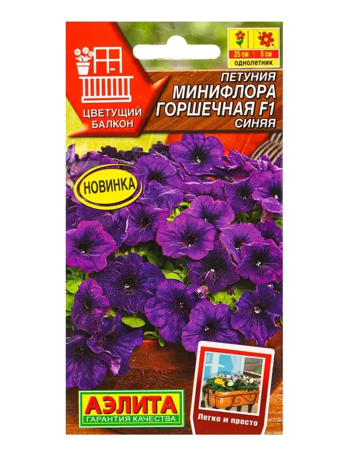 Семена цветов Петуния Минифлора горшечная F1 синяя (драже в пробирке) Цветущий балкон, Ц/П,5 шт. 10
