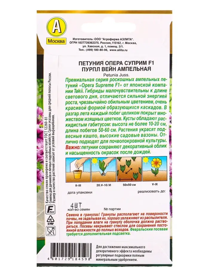 Семена цветов Петуния Опера суприм F1 пурпл вейн ампельная (драже) С. Takii Seed , Ц/П,4 шт. 109457