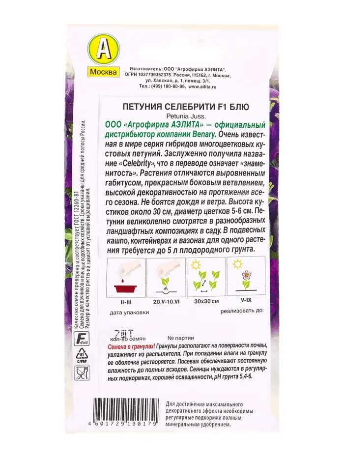 Семена цветов Петуния «Селебрити», F1, многоцветковая, драже, Benary, 7 шт.