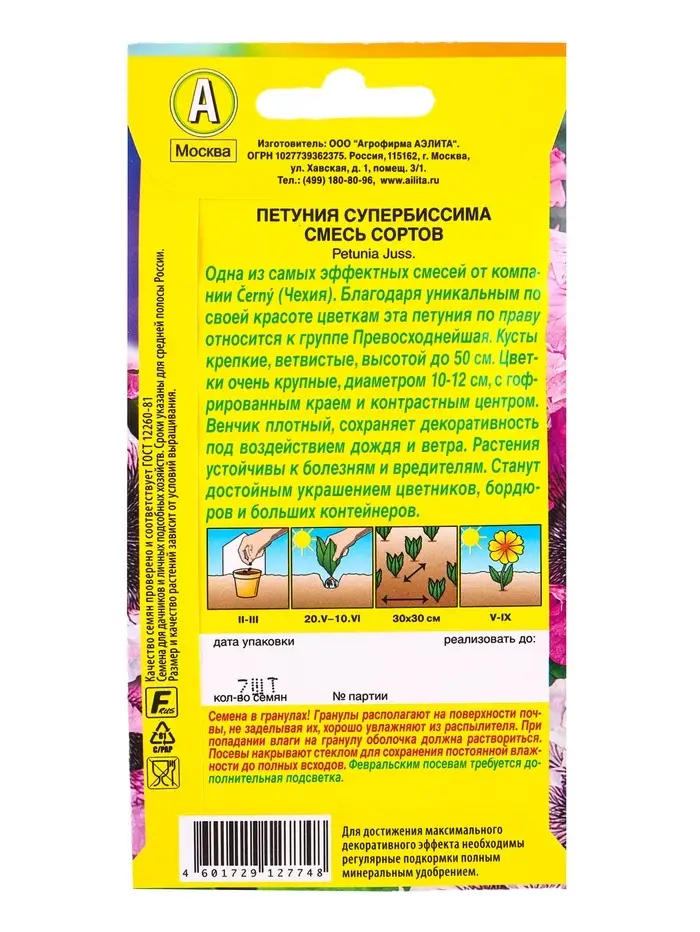 Семена цветов Петуния Супербиссима крупноцветковая, смесь сортов (драже) С. Cerny, Ц/П,7 шт. 109458
