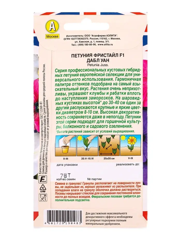 Семена цветов Петуния Фристайл F1 дабл уан (драже) Британская коллекция цветов, Ц/П,7 шт.