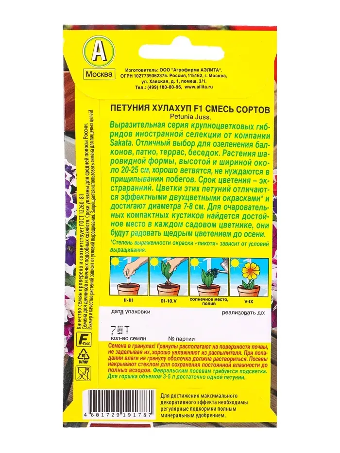 Семена цветов Петуния Хулахуп F1, смесь сортов (драже) С. Sakata Цветущий балкон, Ц/П,7 шт. 1094584