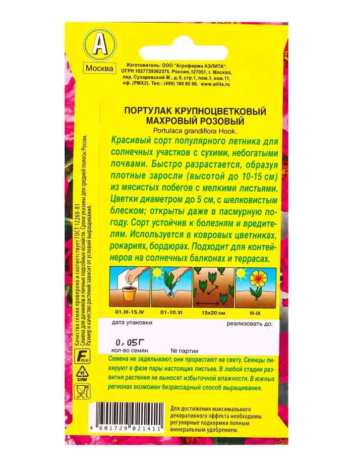 Семена цветов Портулак махровый розовый , Ц/П,0,05 г