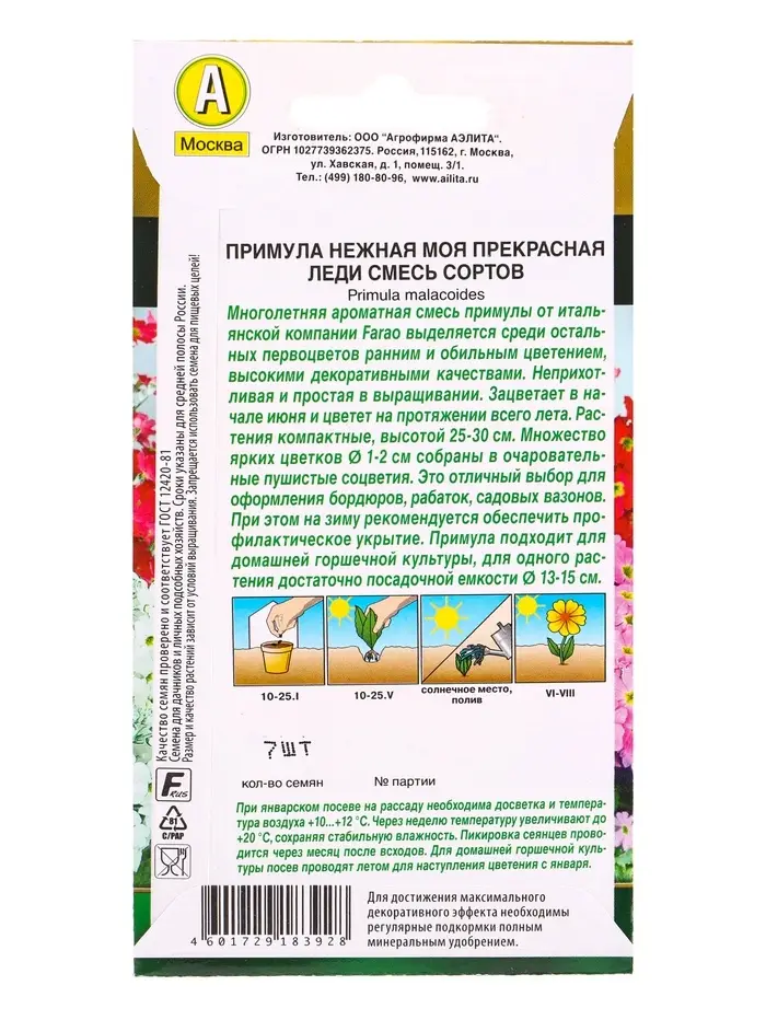 Семена цветов Примула Моя прекрасная леди, смесь сортов Мн С. Farao Золотая серия, Ц/П,7 шт. 1094587