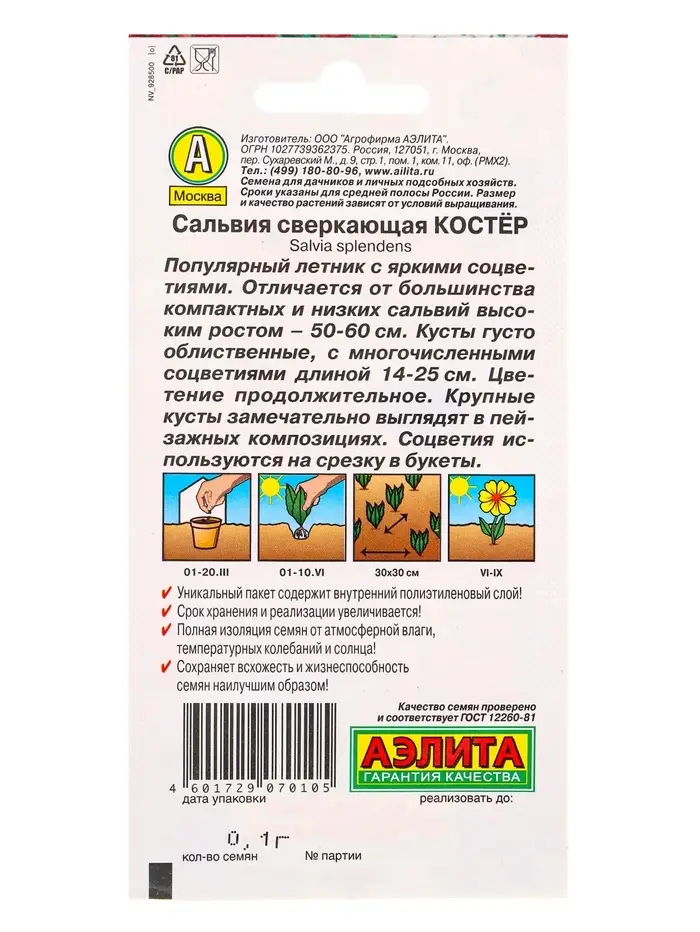 Семена цветов Сальвия Костер , Ц/П,0,1 г