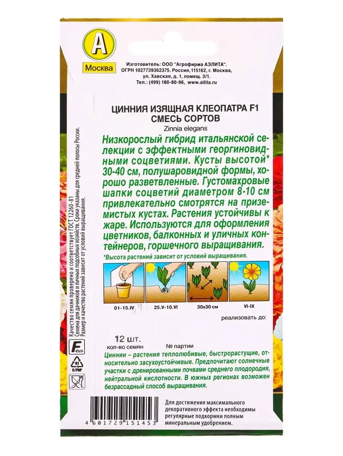 Семена цветов Цинния Клеопатра F1, смесь сортов Золотая серия, Ц/П,12 шт.