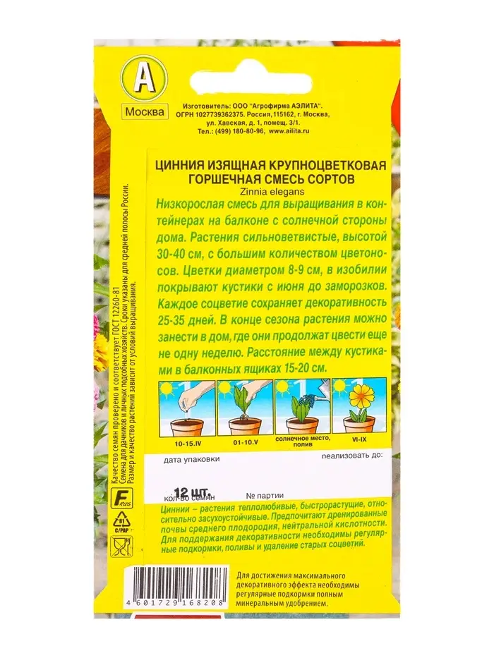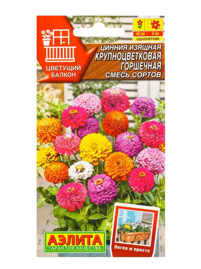 Семена цветов Цинния Крупноцветковая горшечная, смесь сортов Цветущий балкон, Ц/П,12 шт.