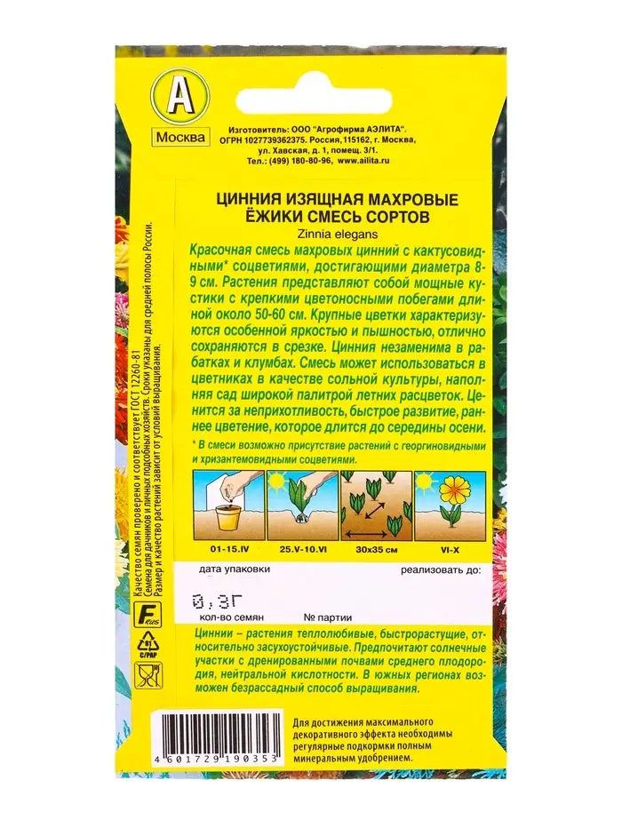 Семена цветов Цинния Махровые ёжики, смесь сортов , Ц/П,0,3 г