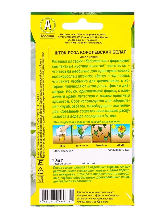 Семена цветов Шток-роза Королевская белая , Ц/П,10 шт.