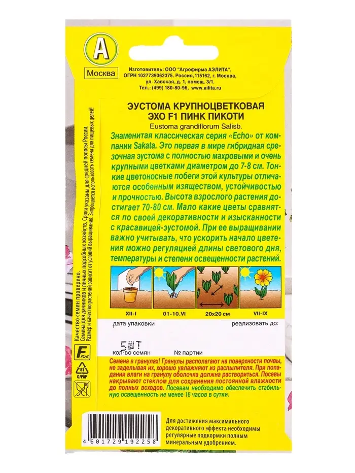 Семена цветов Эустома Эхо F1 пинк пикоти крупноцветковая (драже) С. Sakata, Ц/П,5 шт.