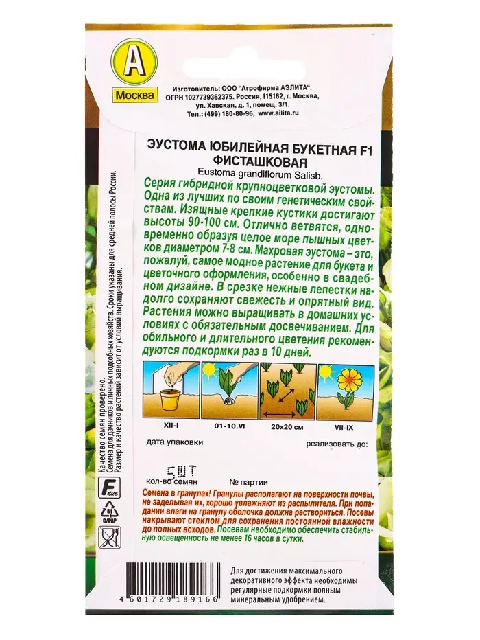 Семена цветов Эустома Юбилейная букетная F1 махровая фисташковая (драже) , Ц/П,5 шт.