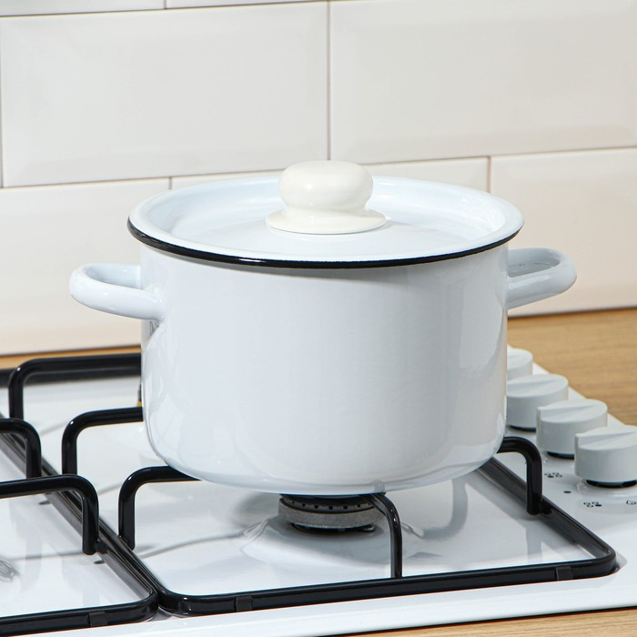 Кастрюля эмалированная, 2,9 л, металлическая крышка, цвет МИКС