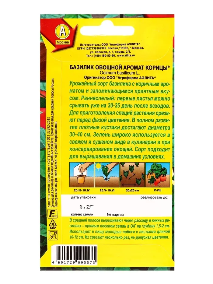 Семена Базилик овощной Аромат корицы , Ц/П,0,2 г