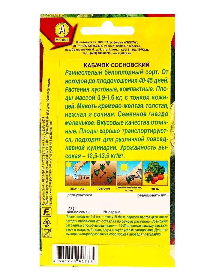 Семена Кабачок белоплый Сосновский, Ц/П,2 г