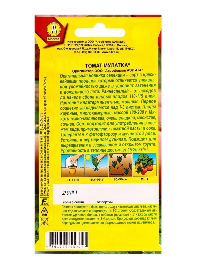 Семена Томат Мулатка Р, Ц/П,20 шт.