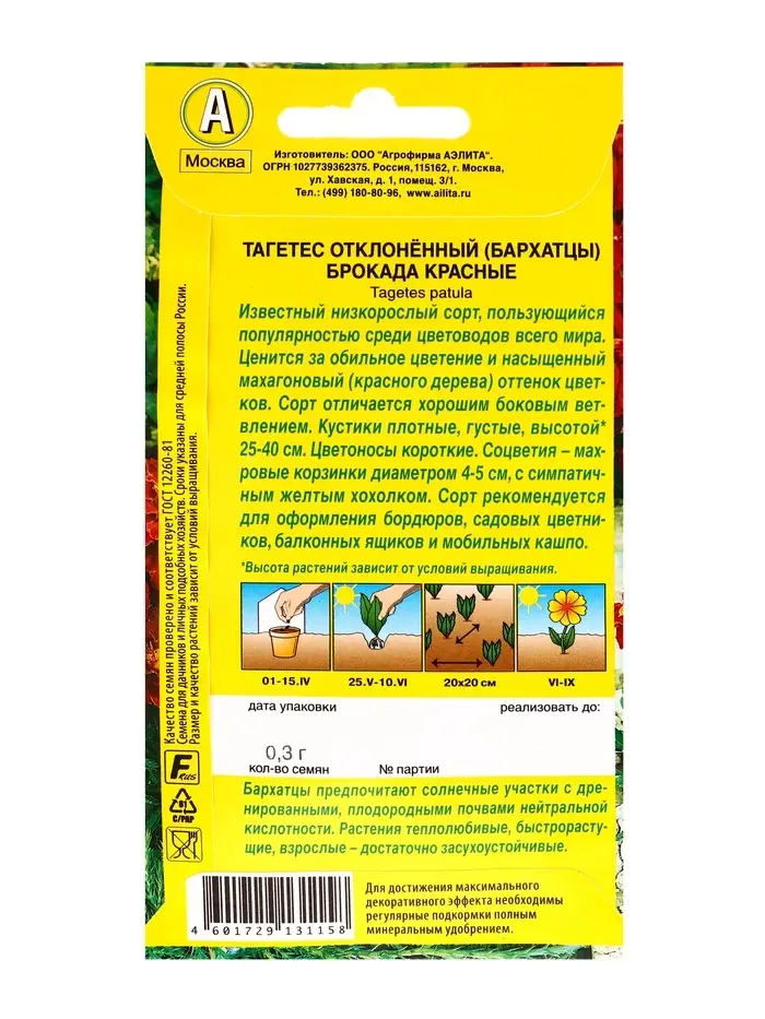 Семена цветов Бархатцы Брокада красные отклоненные , Ц/П,0,3 г