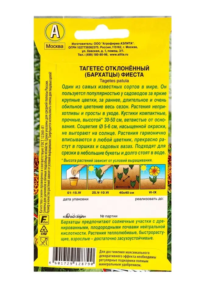 Семена цветов Бархатцы Фиеста отклоненные , Ц/П,0,3 г
