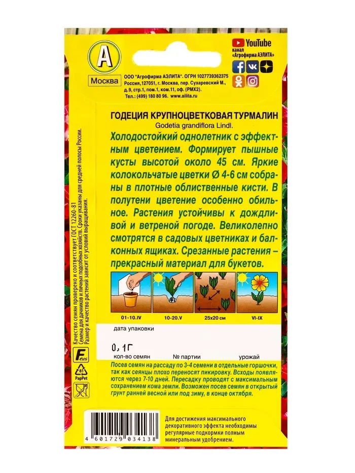 Семена цветов Годеция Турмалин , Ц/П,0,1 г
