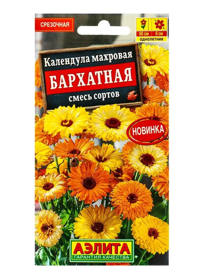 Семена цветов Календула махровая Бархатная, смесь сортов , Ц/П,0,3 г