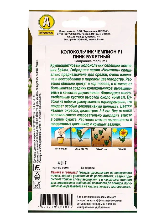 Семена цветов Колокольчик Чемпион F1 пинк букетный (драже) С. Sakata , Ц/П,4 шт.