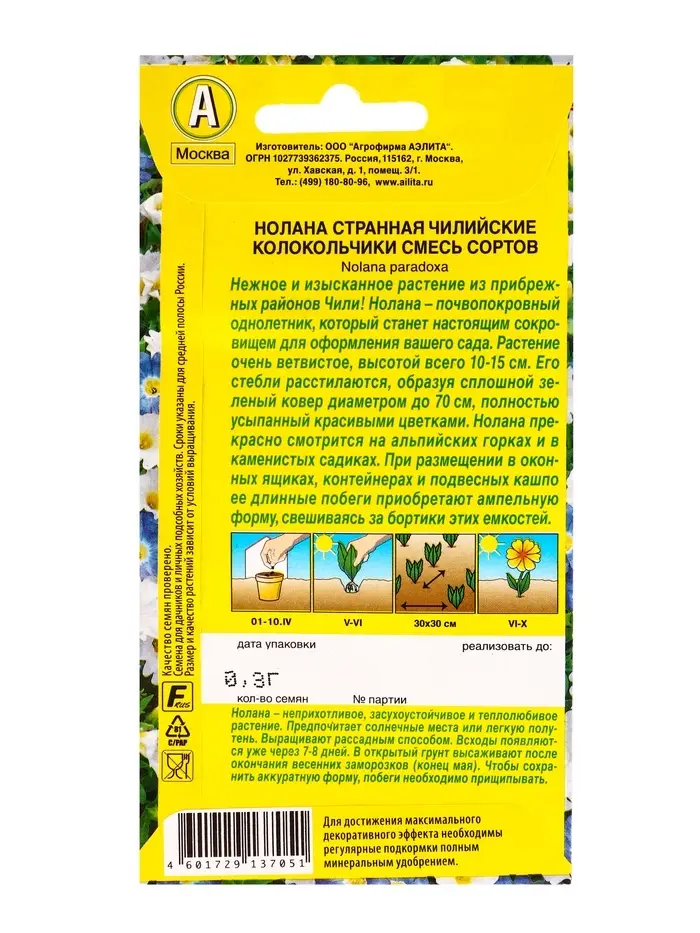 Семена цветов Нолана Чилийские колокольчики, смесь окрасок , Ц/П,0,3 г