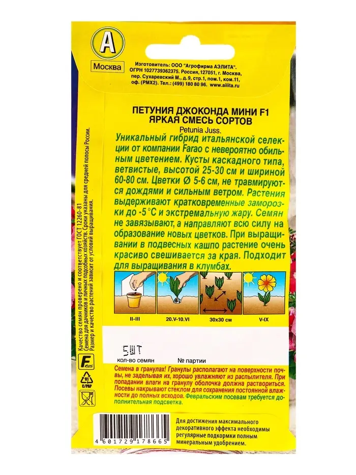 Семена цветов Петуния Джоконда мини F1 яркая, смесь сортов (драже) С. Farao, Ц/П,5 шт.