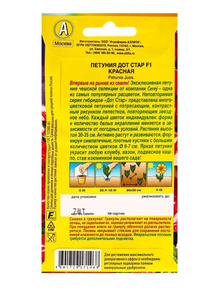 Семена цветов Петуния Дот Стар F1 красная (драже в пробирке) С. Cerny, Ц/П,7 шт.