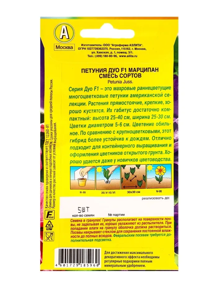Семена цветов Петуния Дуо F1 марципан многоцветковая махровая, смесь сортов (драже), Ц/П,5 шт. 1094