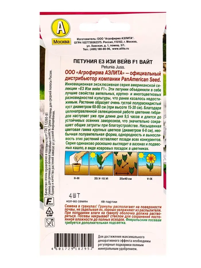 Семена цветов Петуния Е3 Изи Вейв F1 вайт (драже) PanAmerican Wave, Ц/П,4 шт.