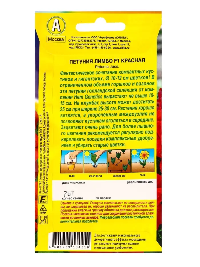 Семена цветов Петуния Лимбо F1 красная крупноцветковая (драже) С. Hem Genetics, Ц/П,7 шт.