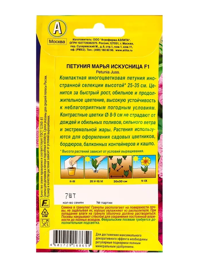 Семена цветов Петуния Марья Искусница F1 многоцветковая (драже в пробирке), Ц/П,7 шт.