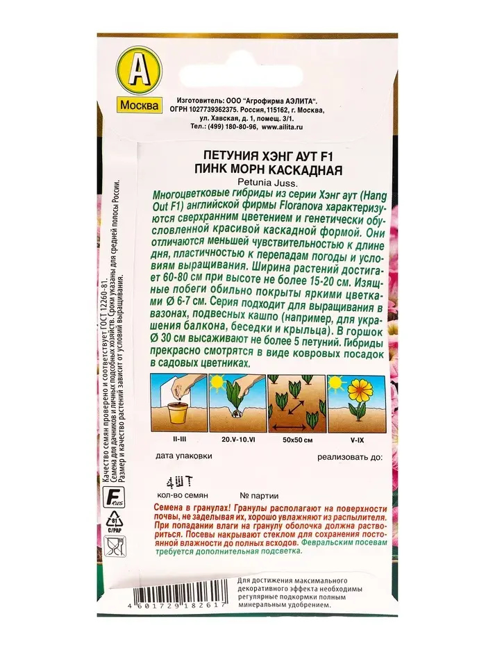 Семена цветов Петуния Хэнг аут F1 пинк морн каскадная (драже) С. Floranova , Ц/П,4 шт.