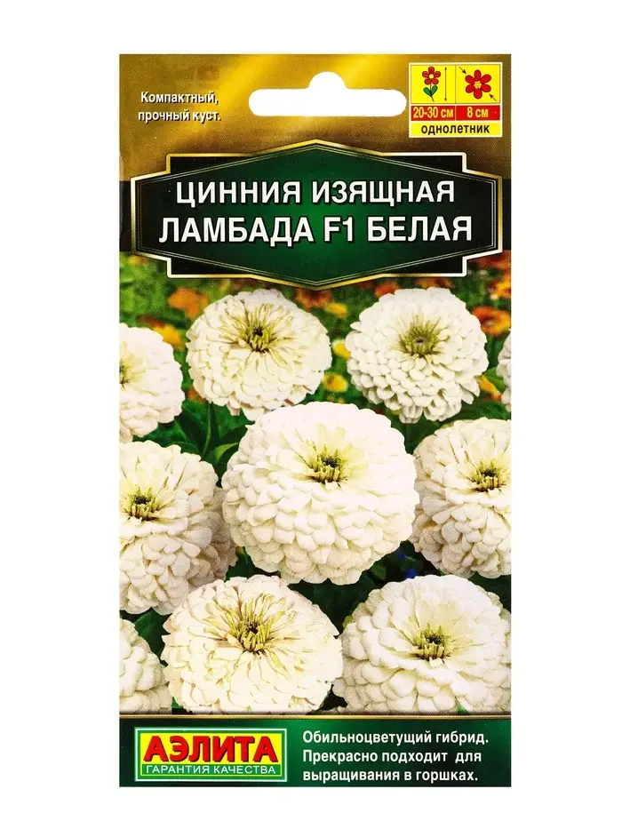 Семена цветов Цинния Ламбада F1 белая Золотая серия, Ц/П,12 шт.
