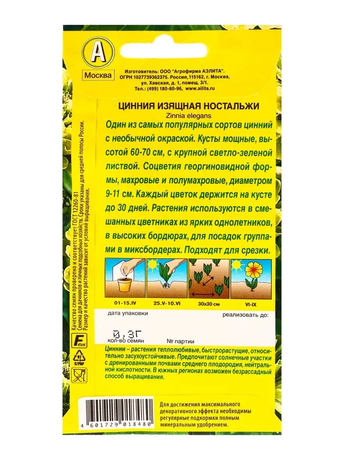 Семена цветов Цинния Ностальжи , Ц/П,0,3 г