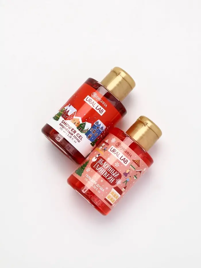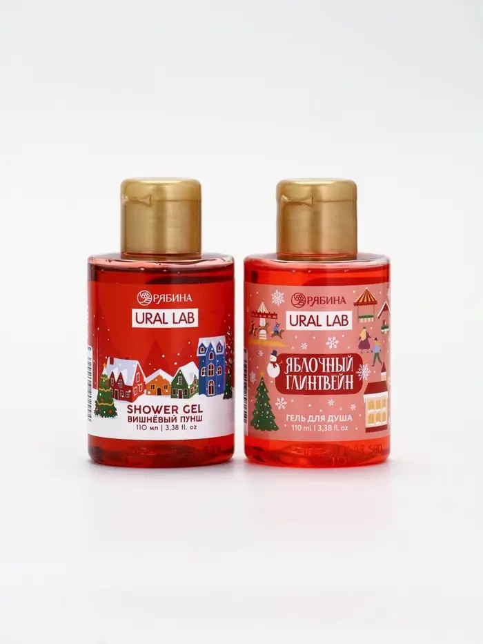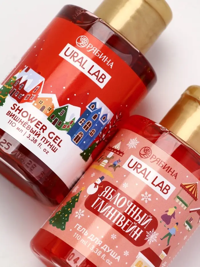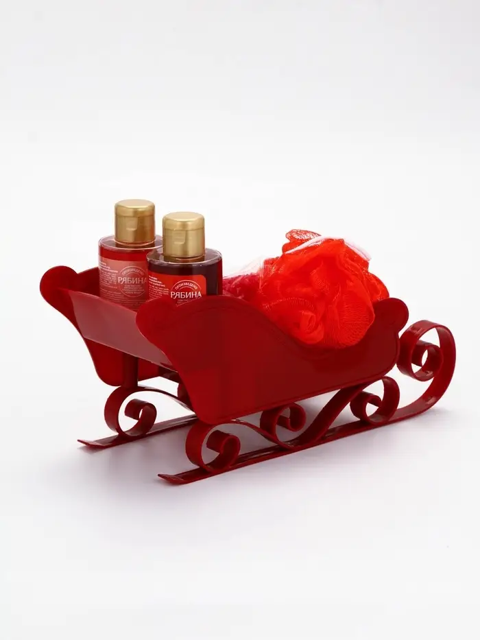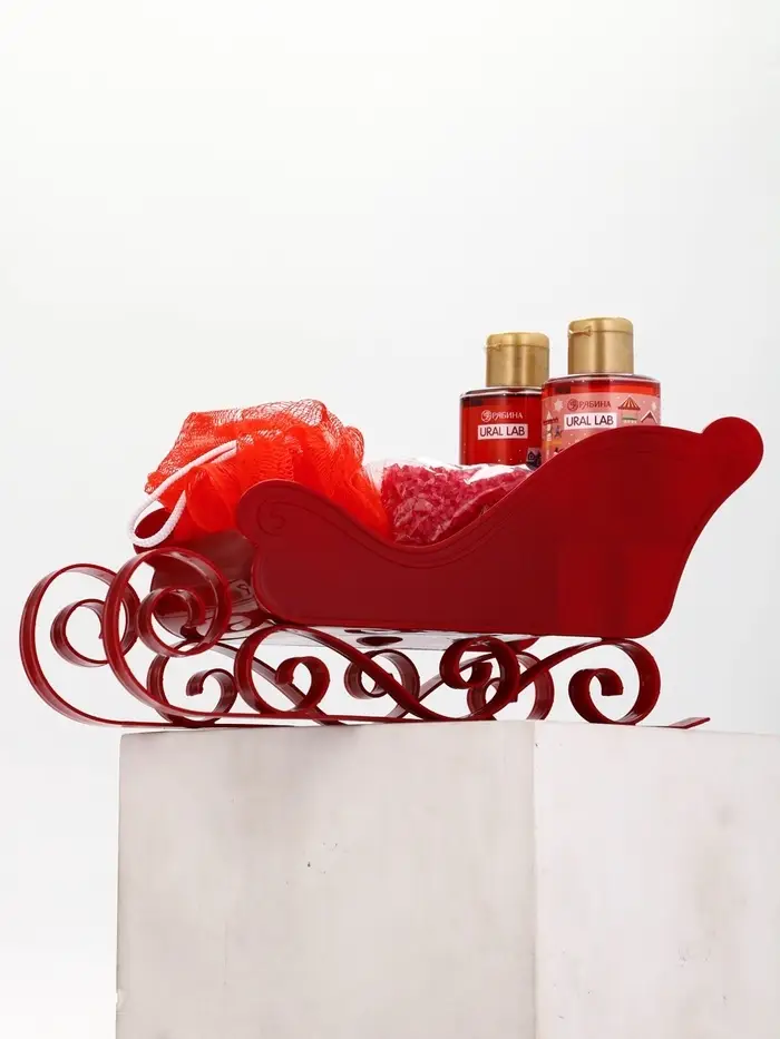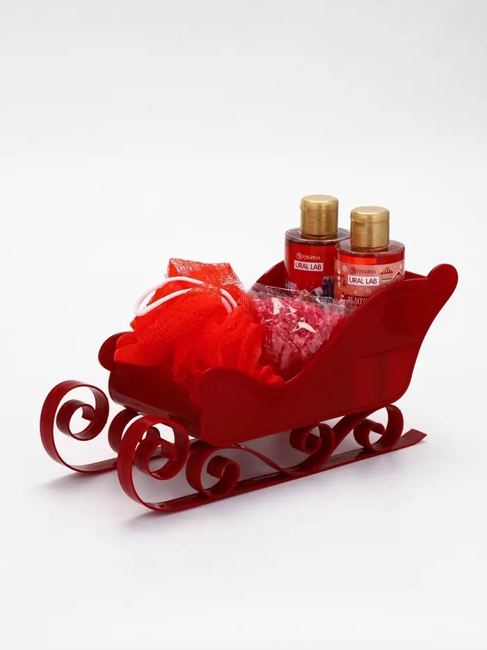 Подарочный набор новогодний в санях: 2 геля для душа, соль для ванны и мочалка, URAL LAB