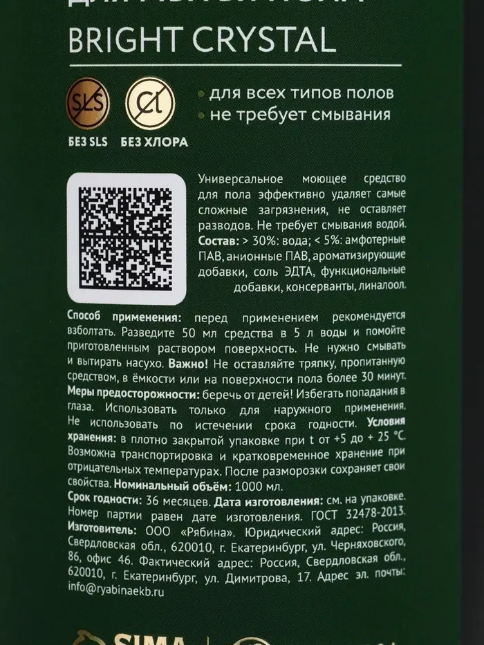 Средство для мытья пола парфюмированное, аромат Bright crystal, 1000 мл, ULAB