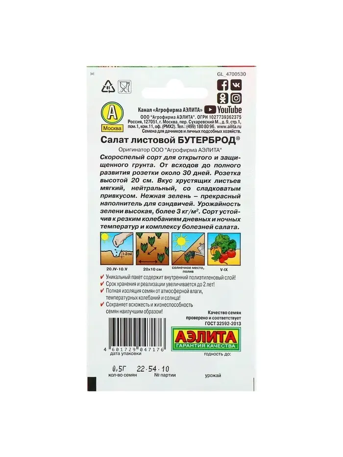 Набор семян Салат "Бутерброд", 5 шт.