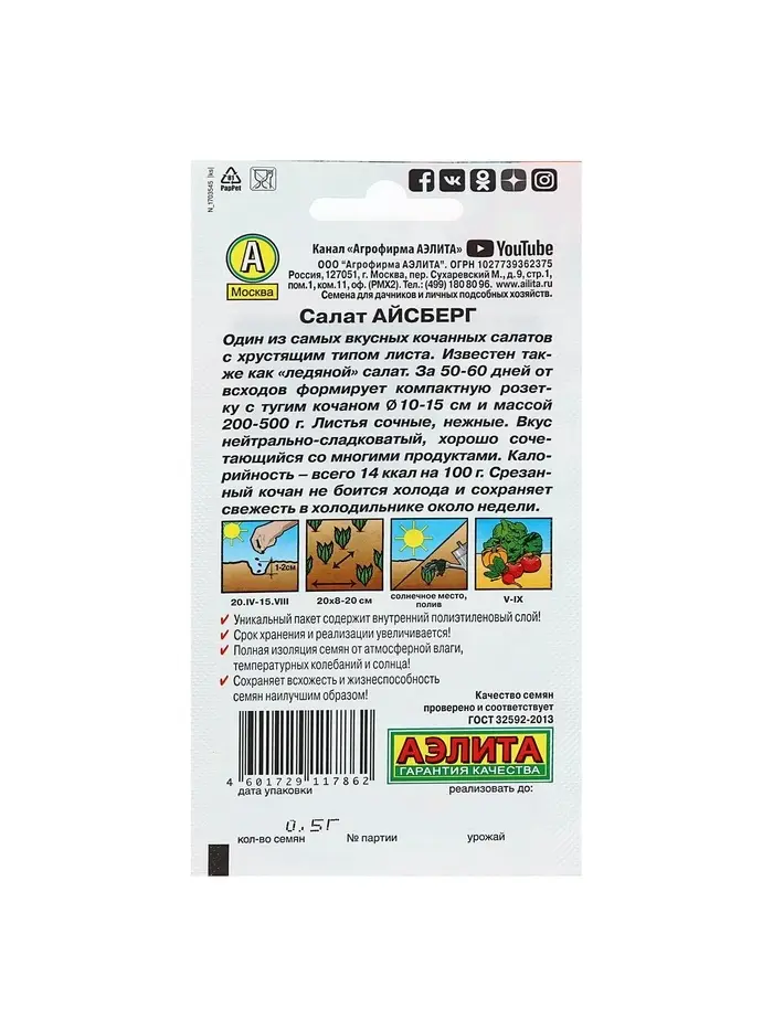 Набор семян Салат Айсберг кочанный, 5 шт.