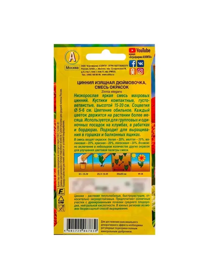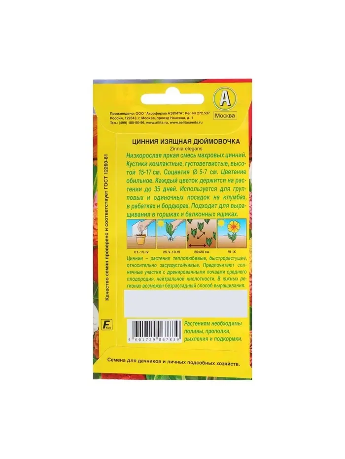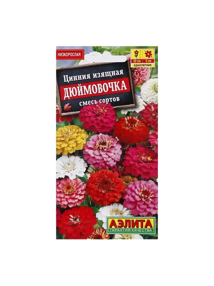 Набор семян Цинния "Дюймовочка", смесь окрасок, О, 5 шт.