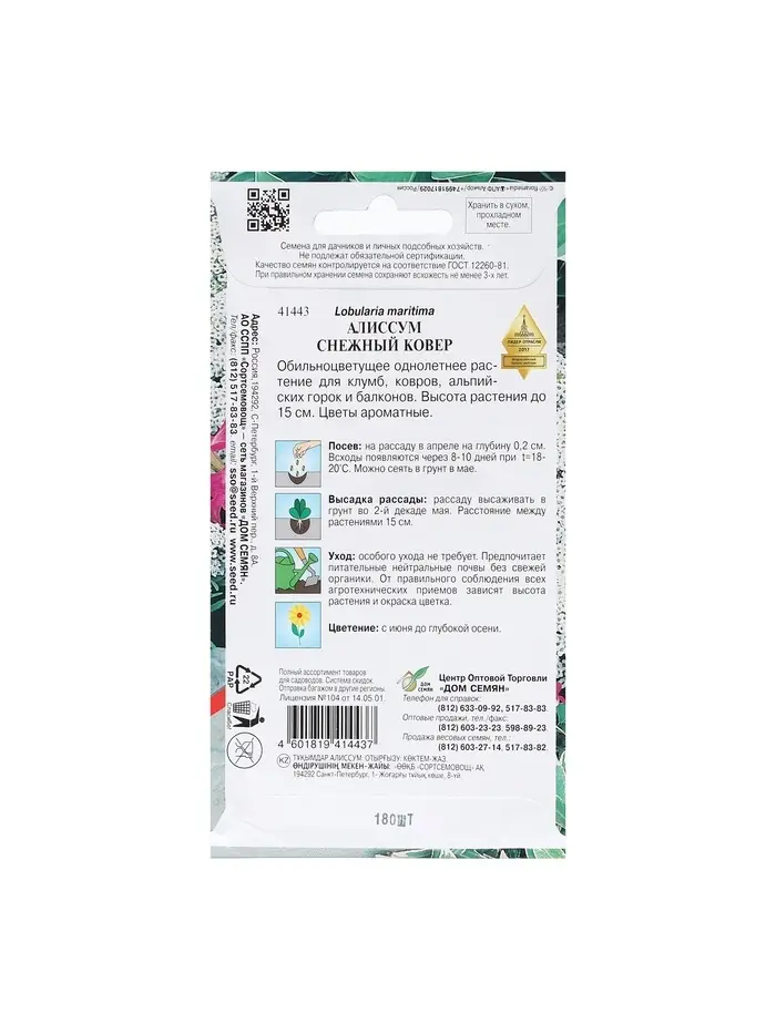 Набор семян Алиссум "Снежный ковер", 5 шт.