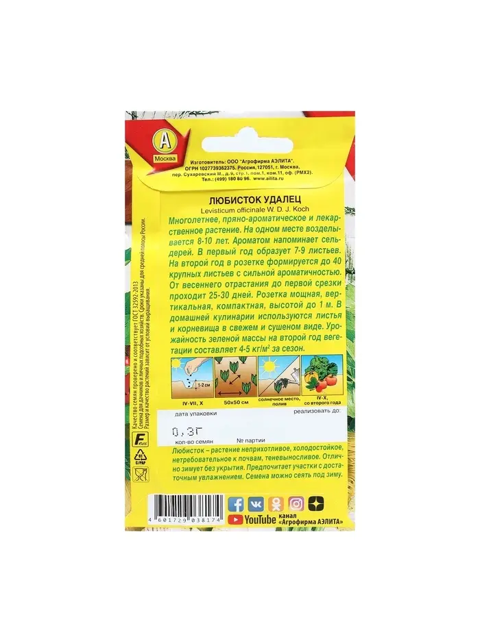 Набор семян Любисток "Удалец", пряность, 5 шт.